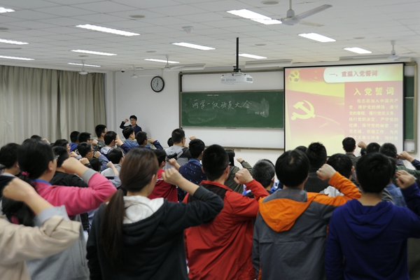 首先,辅导员陈兆辉向在场党员及预备党员详细阐述两学一做的内涵和意义,并介绍今后学校学院相关的党员活动,鼓励大家在毕业季主动参与活动,争当优秀党员。随后,辅导员陈奇针对意识形态和学习方法等方面做了补充说明,强调要坚定共产主义信仰,未来离校也要做一名合格优秀的党员,积极参加党员活动。