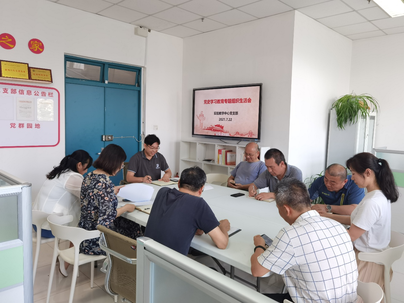 7月22日下午,实验教学中心党支部在工科楼A319召开党史学习教育专题组织生活会,会议由支部书记张淑霞主持,院长助理陈小博老师参会指导。