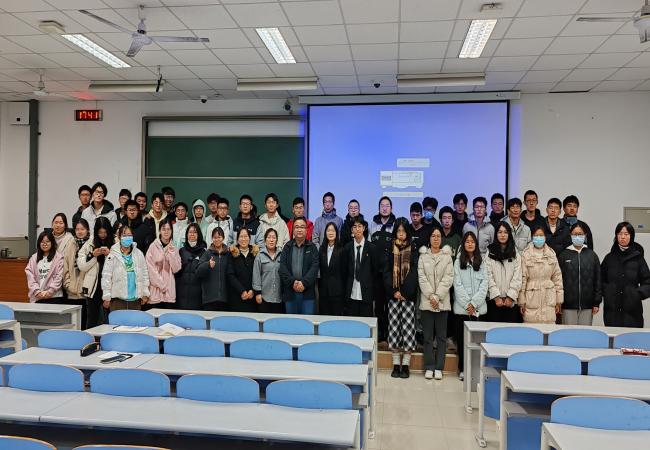 为强化化学专业学生对本专业研究领域及培养方案的认识与理解,解答同学们在专业就业方向的疑惑,增强学生生涯规划能力,11月12日下午,化学系组织2023级学生在南教110开展了以“徜徉分子世界,领略变化之美”为主题的专业介绍会暨就业主题团日活动。活动由化学系系主任卢玉坤主讲,学科负责人张龙力、党支部书记王创业、系副主任王淑涛、班主任陈曦、温聪颖受邀出席,化学2301、2302团支部全体成员参加。