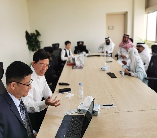 访问阿卜杜勒阿齐兹国王科学院(KACST)期间,曾景斌、张金弘分别就学院基本情况、主要研究方向和研究成果等进行介绍,石油化工研究所所长Afrah M. Aldossari博士和多名专家聆听了报告,对我院的研究水平表示赞赏,表达了浓厚的合作兴趣。期间,代表团参观了科学院创业孵化基地和工程实验室。