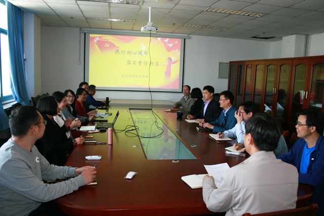 5月23日下午,应用化学系党支部在工科楼A629会议室召开“践行初心使命,落实责任担当”专题组织生活会,集体学习习近平总书记在北京大学师生座谈会上的重要讲话精神,会议由支部书记杨修洁主持。